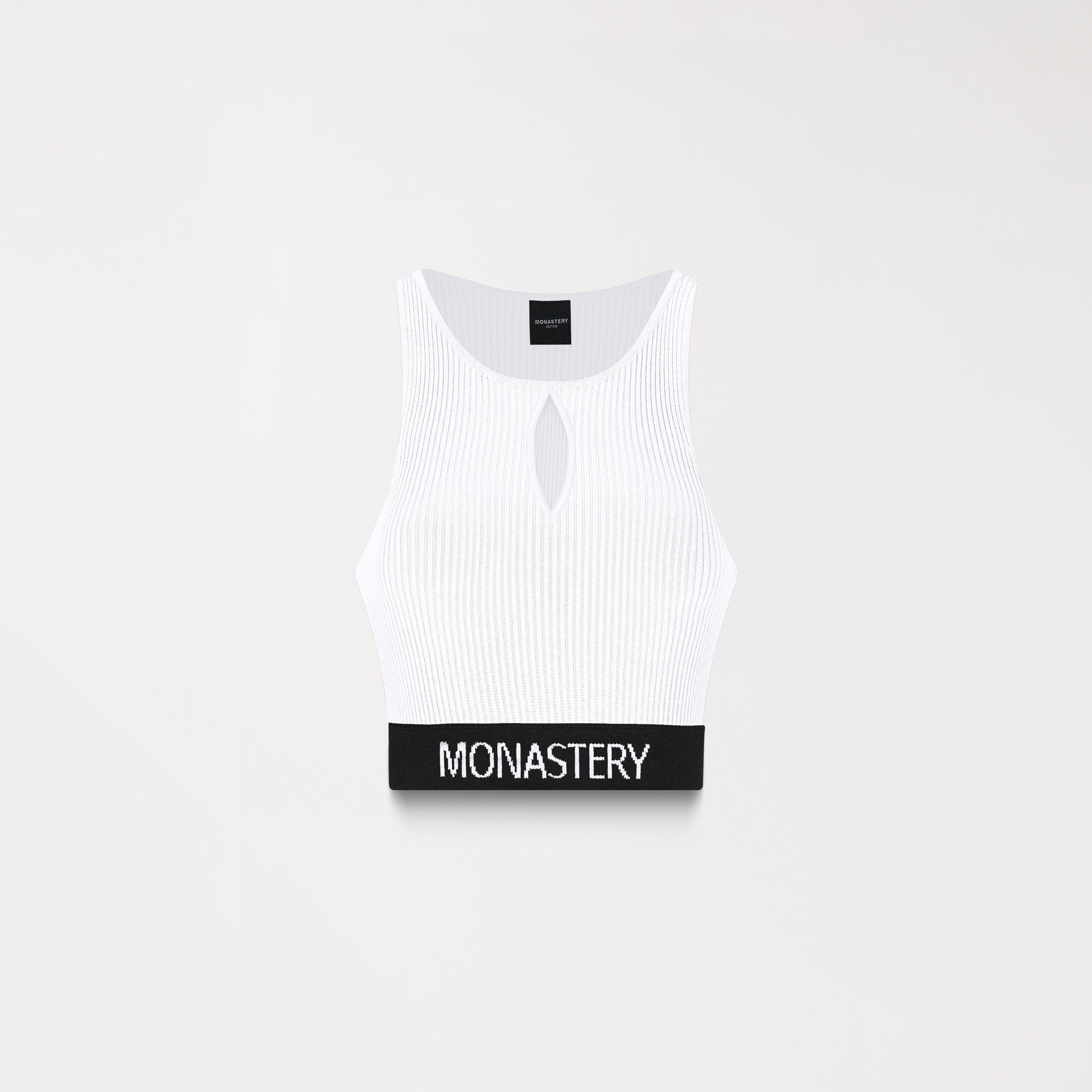 Top femenino confeccionado en tejido exclusivo de Monastery, diseñado para destacar con una construcción estructurada que realza la figura mediante un escote frontal preciso. La pretina elástica, visible a ambos lados, incorpora el logo Monastery como sello distintivo de identidad y continuidad visual. En la parte posterior, el logo insignia se presenta en bordado plano, aportando contraste y carácter sutil. Una pieza concebida para quienes valoran la unión entre forma, presencia y un diseño depurado.