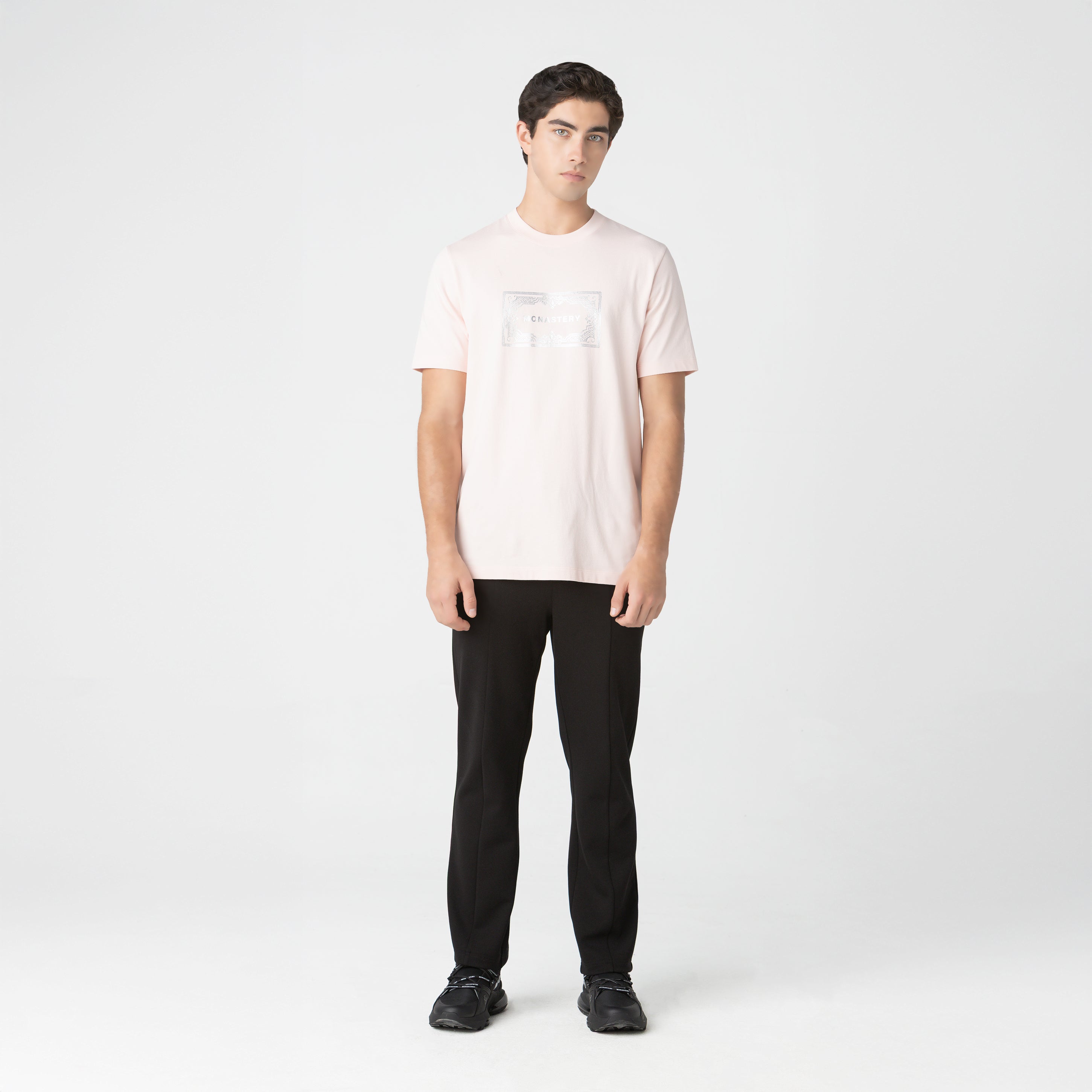 Camiseta masculina confeccionada en algodón 100% de alta calidad, reconocida por su suavidad al tacto y excelente durabilidad. Incorpora cuello en rib de 2,5 cm que aporta un ajuste cómodo y un acabado moderno. El diseño destaca por un estampado frontal con técnica en foil plata, que genera un efecto brillante y sofisticado, complementado por un detalle en foil en la parte posterior para un equilibrio visual contemporáneo. Disponible en los colores Black, White y Rose Quartz, tonalidades versátiles ideales para crear looks urbanos con personalidad. Una prenda pensada para quienes buscan comodidad, calidad y un acento distintivo en su...