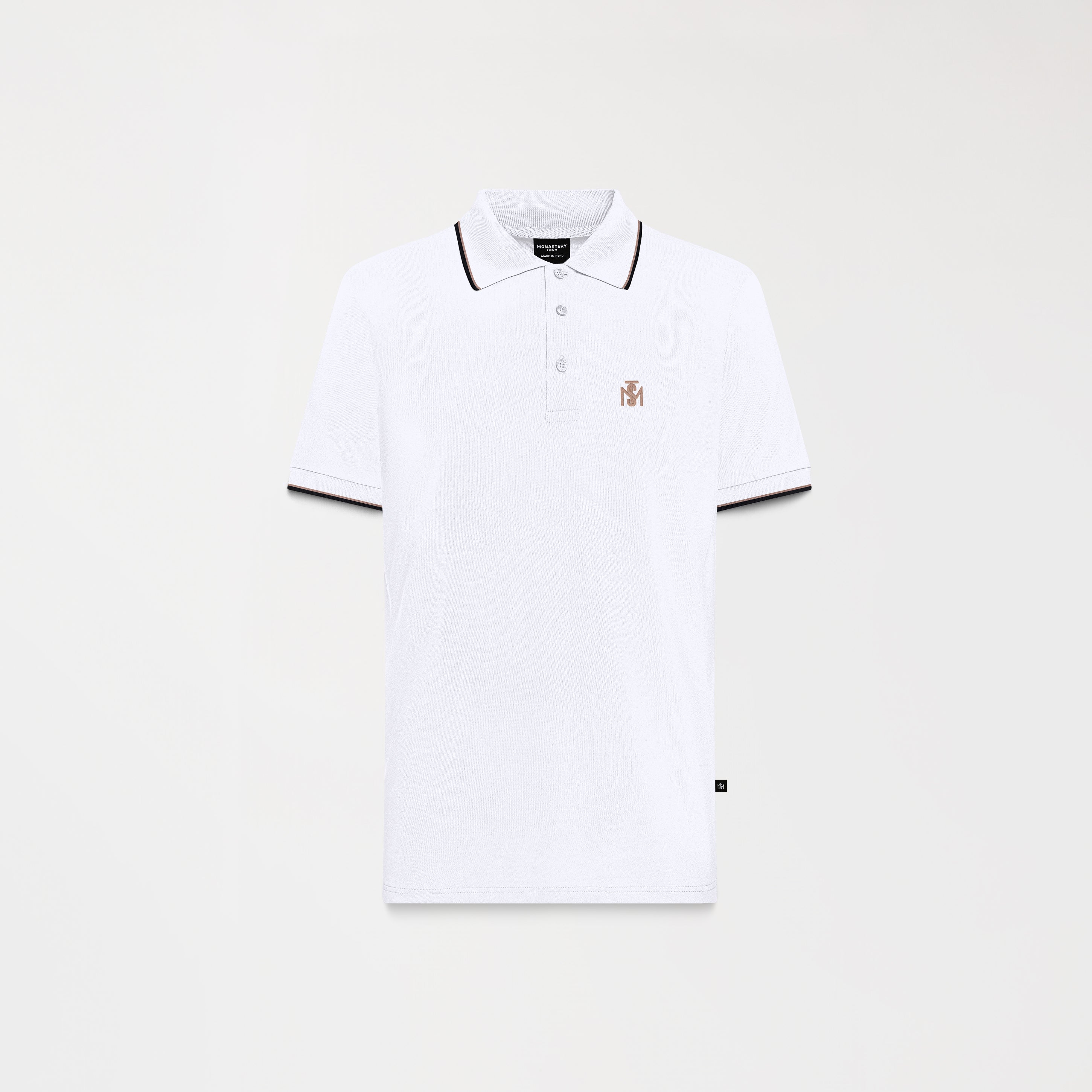 La polo Nolan combina sobriedad y detalle con un enfoque moderno, confeccionada en algodón 100% pima peruano exclusivo para Monastery y silueta regular. Su cuello tejido y puños con tipping en contraste realzan la estructura y aportan definición. El logo TSM bordado al frente y el estampado en alta densidad en la espalda refuerzan la identidad de la marca con sutileza, mientras que la perilla interna en tono contraste añade un acabado sofisticado. Una pieza pensada para elevar el look casual con intención y estilo refinado.